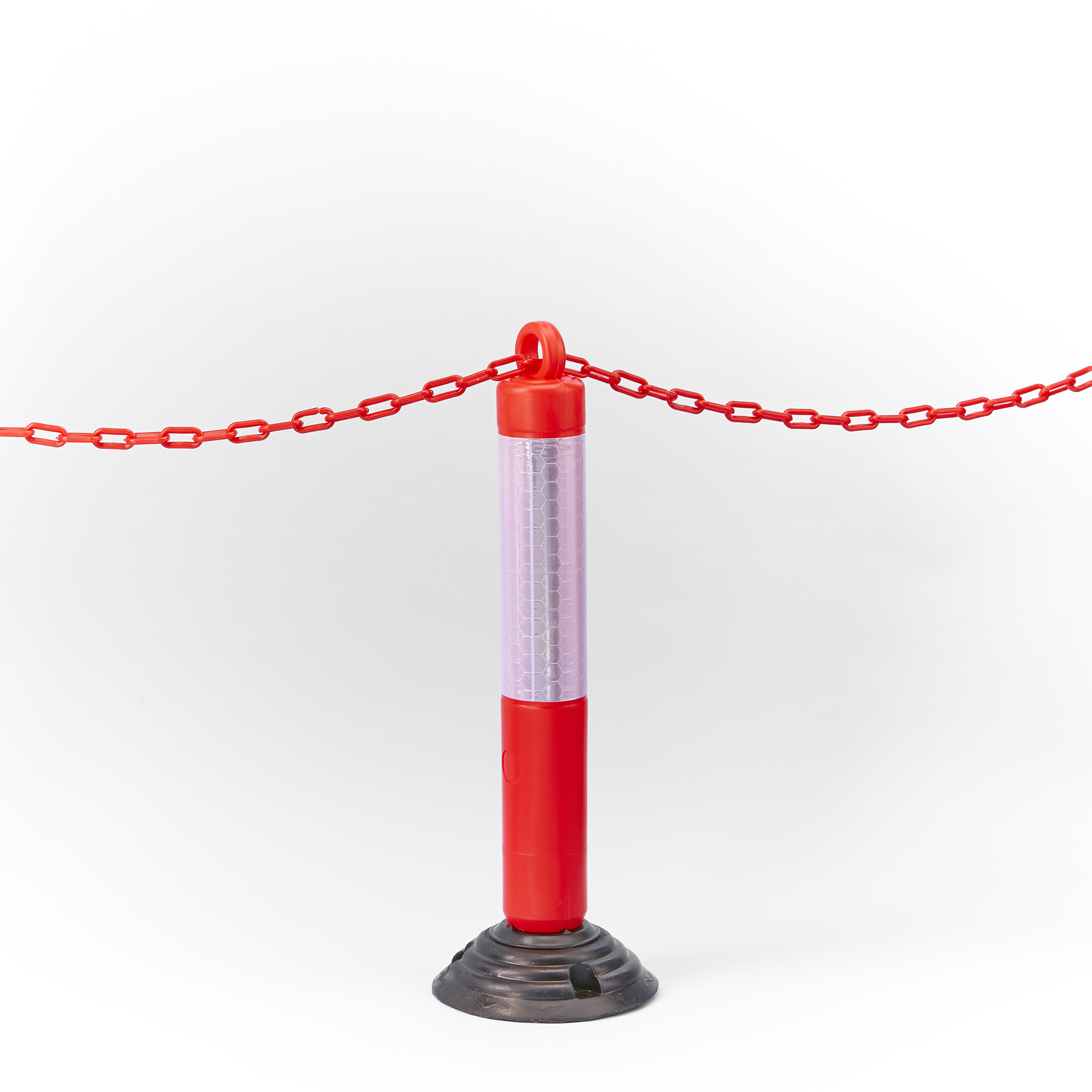 Dieser Signalpfosten besteht aus widerstandsfähigem LDPE (Polyethylen niedriger Dichte) und ist auf einer flexiblen Basis montiert, so das er sich bei Kontakt bis zu 180° in alle Richtungen neigt – ohne zu brechen oder Schäden zu verursachen. Ideal für den Einsatz auf Parkplätzen oder zur temporären Absperrung. Der integrierte Ring an der Spitze ermöglicht das einfache Durchführen einer Absperrkette oder eines Seils.