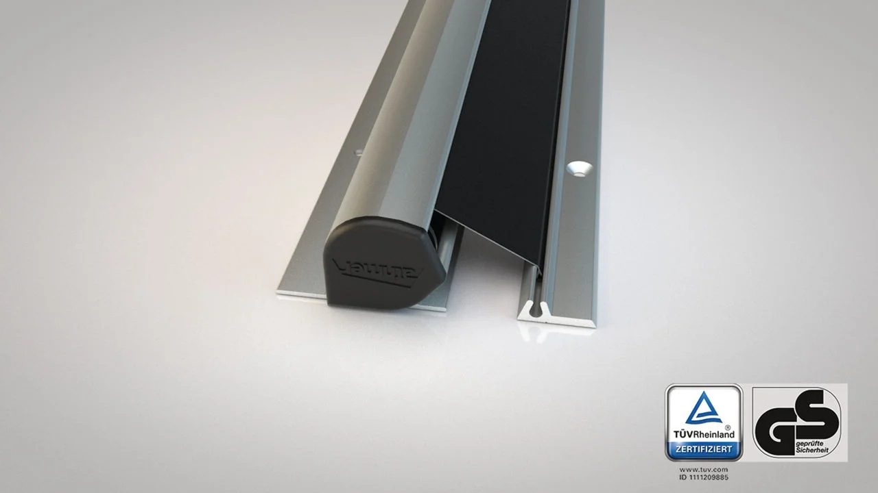 Schutzfunktion: Selbsttätig auf konstante Spannung ziehendes Schutzrollo
